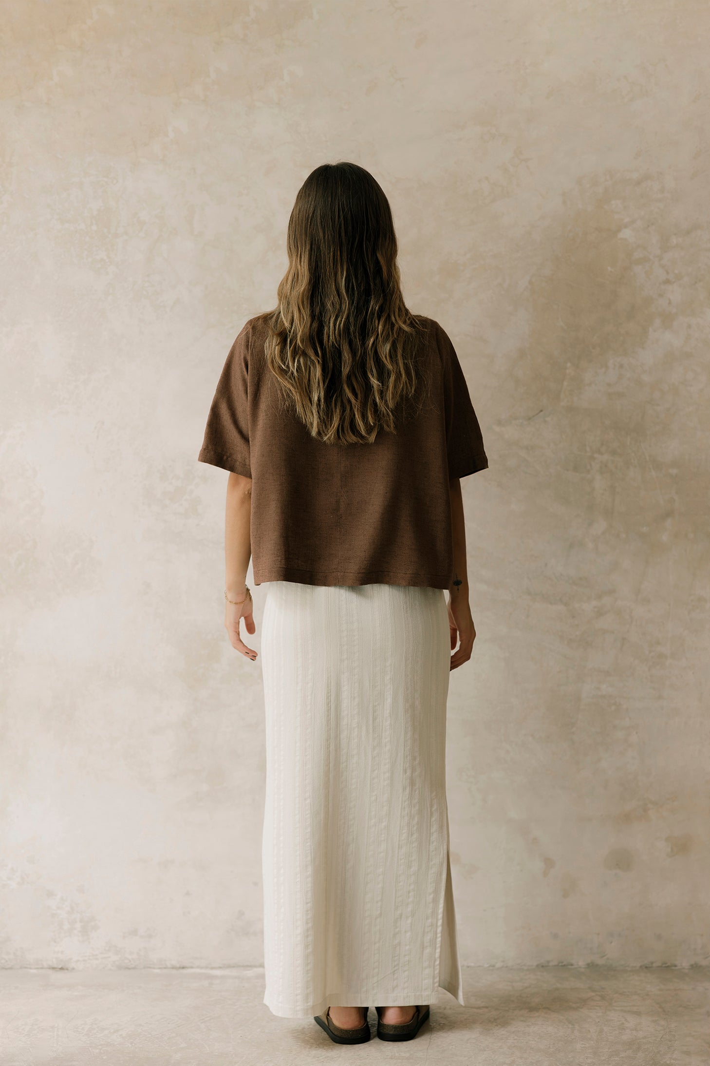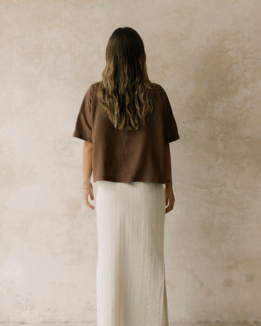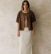 Es de fibras naturales viscosa-lino, ideal para usar como cover up en la playa y como loungewear.