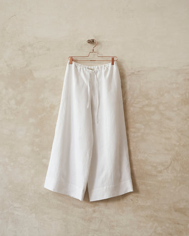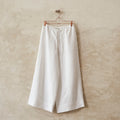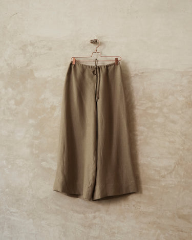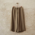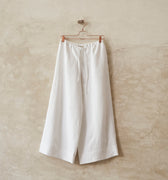 El pantalón Montejo es largo de silueta amplia y fluida. Su cintura elástica suave tiene una jareta delgada para ajustarlo y tener mejor comodidad.
