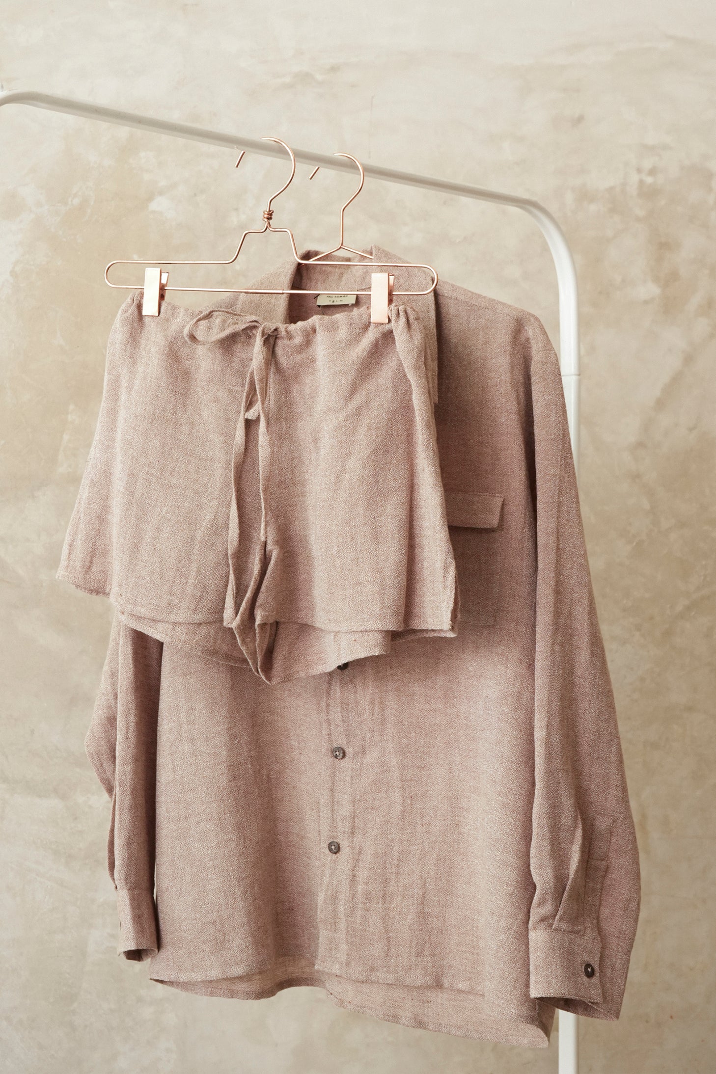 Es de tiro alto, con cintura elástica y una cinta ajustable que puedes dejar con un nudo o lazo. Esta hecho de una tela suavecita de lino, que no transparenta y te da un look relajado.